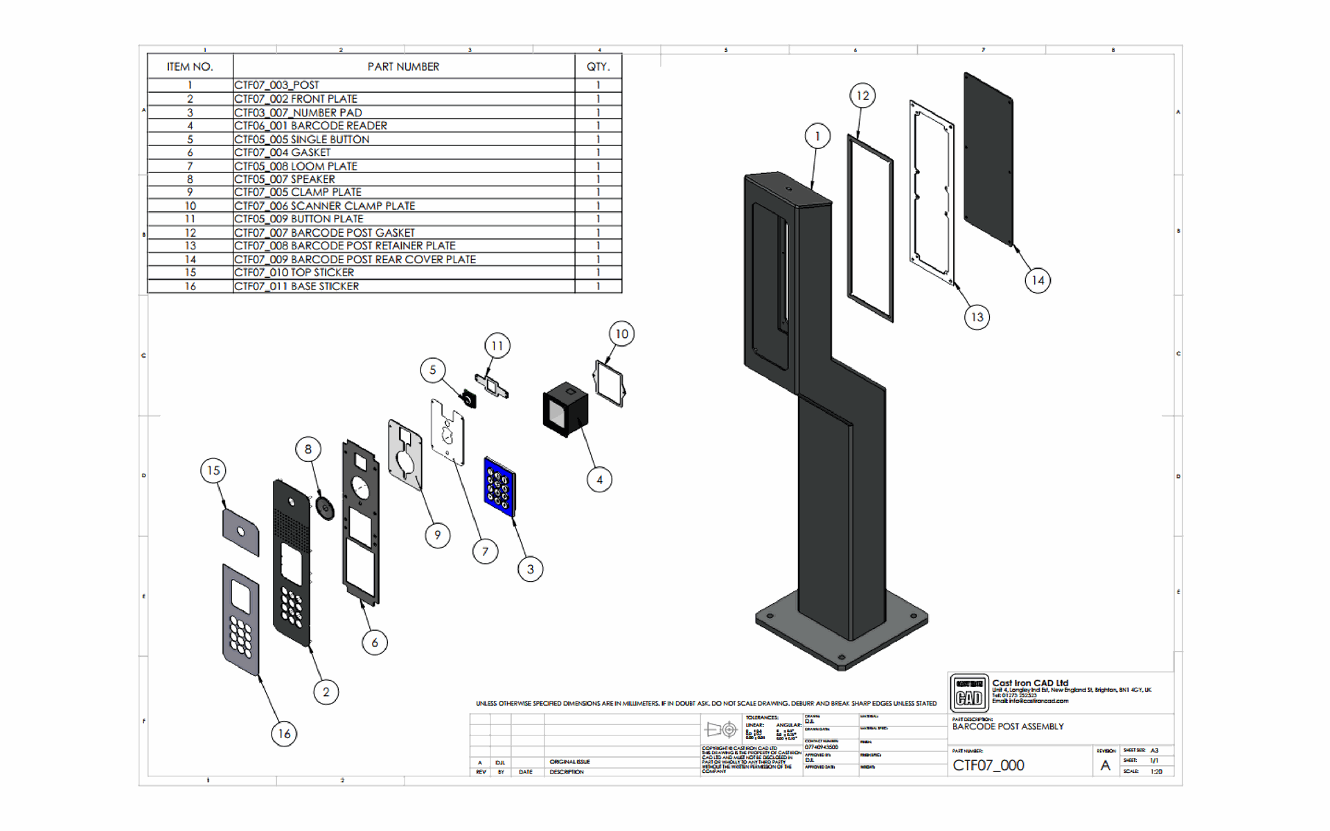 Aluminium and stainless housing designed to incorporate the clients existing 4G electronics into a robust, access intercom, designed for high-end applications. Complete MRP system engineered to ensure that stock is always available to accommodate predicted sales demand.
